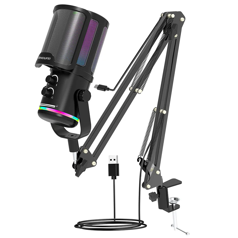 Professional Condenser Microphone USB Dynamic Microphone With Mute Button Gaming Mic For Studio Singing Podcasts Live Broadcast