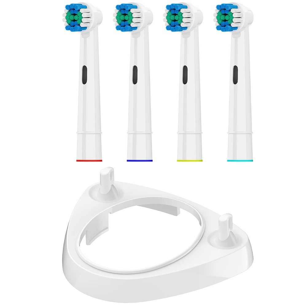 4 Pack Replacement Brush Heads and Toothbrush Head Holder Stand, Compatible with Oral B Electric Toothbrushes, for 1000 500 8000