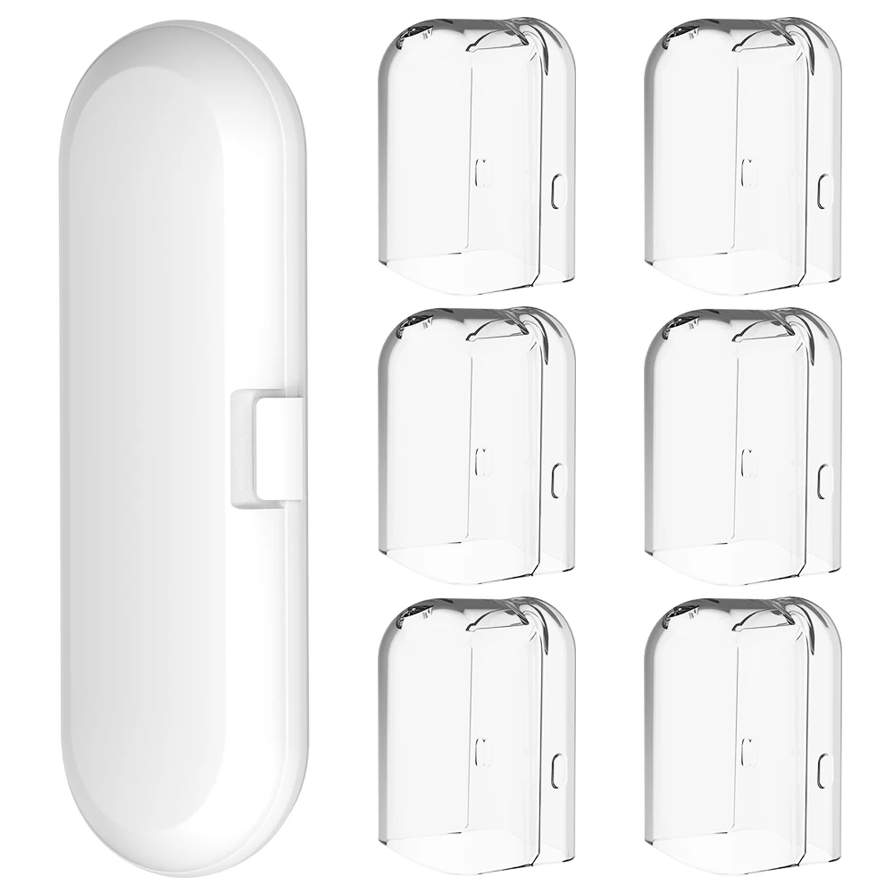 Reusable Toothbrush Travel Case & 6 Pcs Brush Heads Dustproof Covers Set, Compatible with Philips Sonicare Electric Toothbrushes