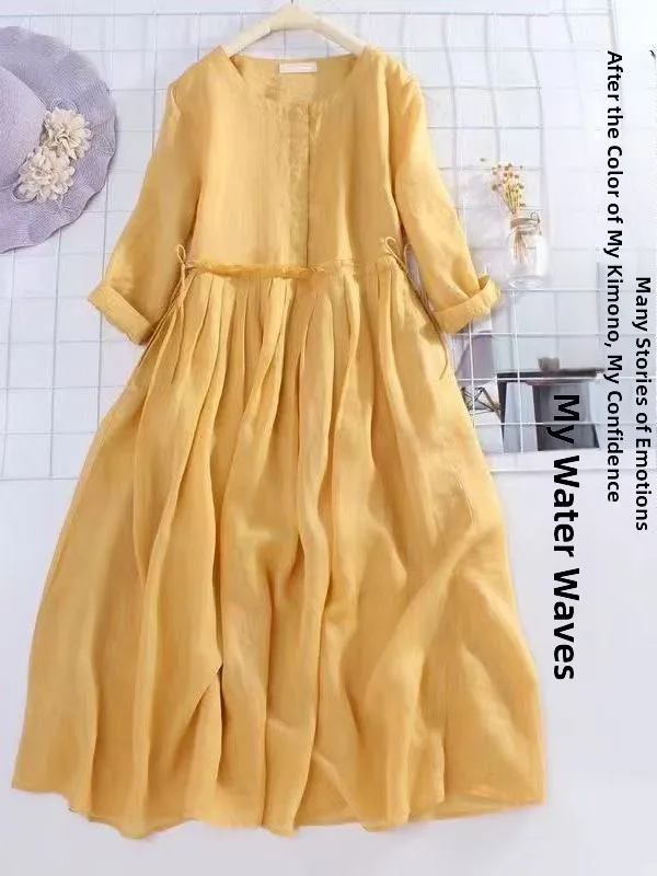 Artistic Japanese Korean Cotton Linen Svel Dr Base Skirt Top High Waist A-Line Summer Casual Loose Fit round Ne