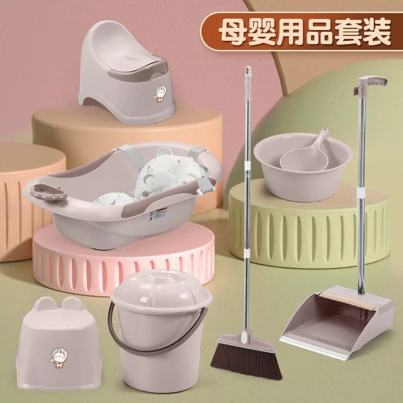 Baby Bath Set Bottle Storage Box Bucket Children's Stroller Toilet Storage Cabinet Eight-piece Set Baby Basin