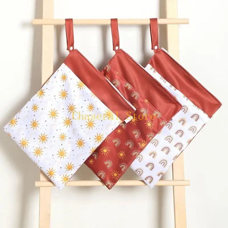 E7CE Infant Diaper Bag Print Dry Wet Bag for Diaper Nappies Organize Waterproof Zipper Bag Baby Stroller Diaper Storage Bag