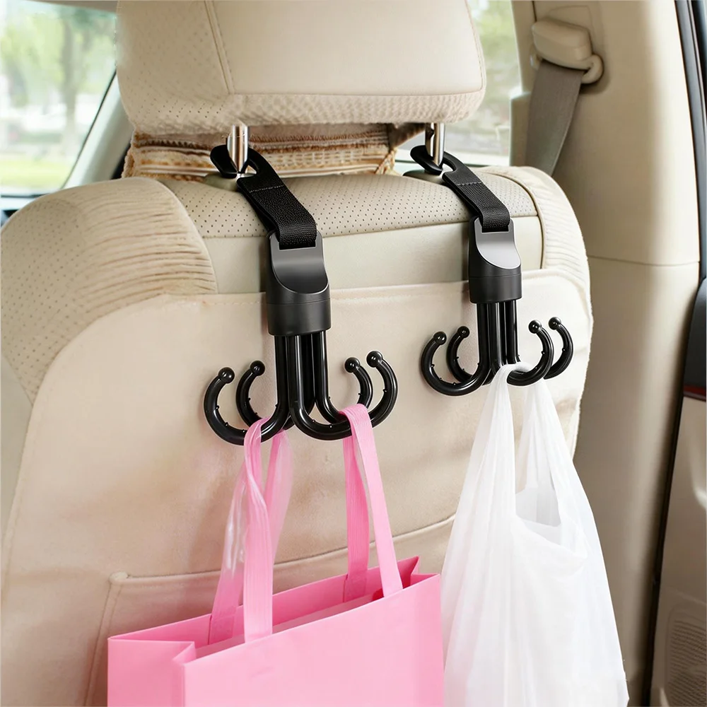 270° Rotatable Stroller Hooks 4 Strong Hooks 15KG Max Adjustable Strap Universal for Baby Pram Car Organizer Bag Hanger