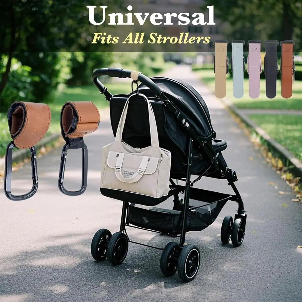 PU Leather Pram Hooks Multipurpose Bag Holders Aluminum Alloy Clips for Baby Stroller Travel Shopping