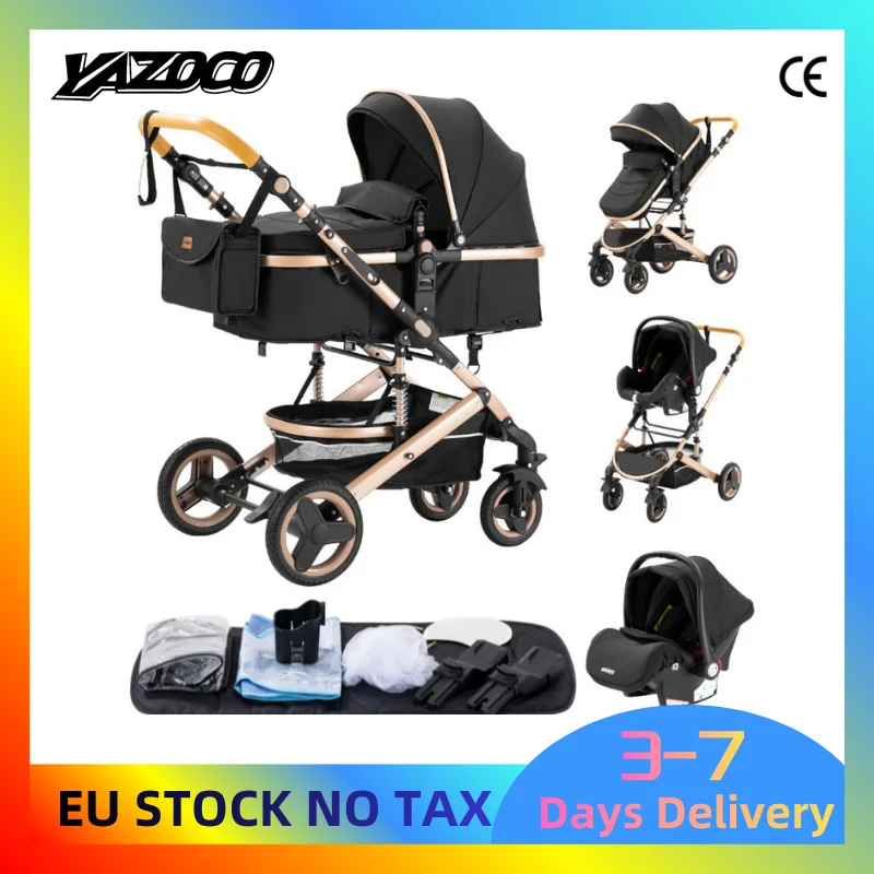 Multifunction 3 in 1 Baby Stroller with Car Seat and Sleeping Basket Lightweight Pram Baby Compact Folding Pram Infant Pushchai