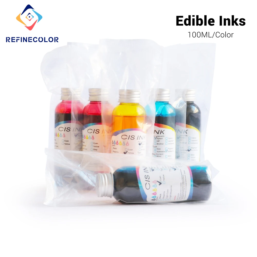 Refinecolor 6Colors CMYK LC LM Edible INKS SGS GQT Certificated Food Inks For Epson L1800 R330 R1390 XP600 Inkjet Printer