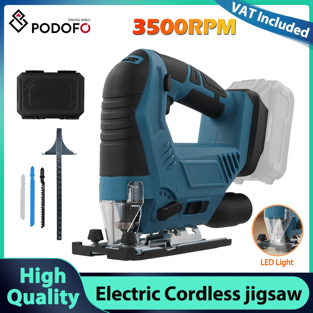 Podofo Electric Jigsaw 3500 RPM 300W Adjustable 3 Cutting Gears Woodworking Tool for Wood Metal Plastic Cutting for 18V Battery