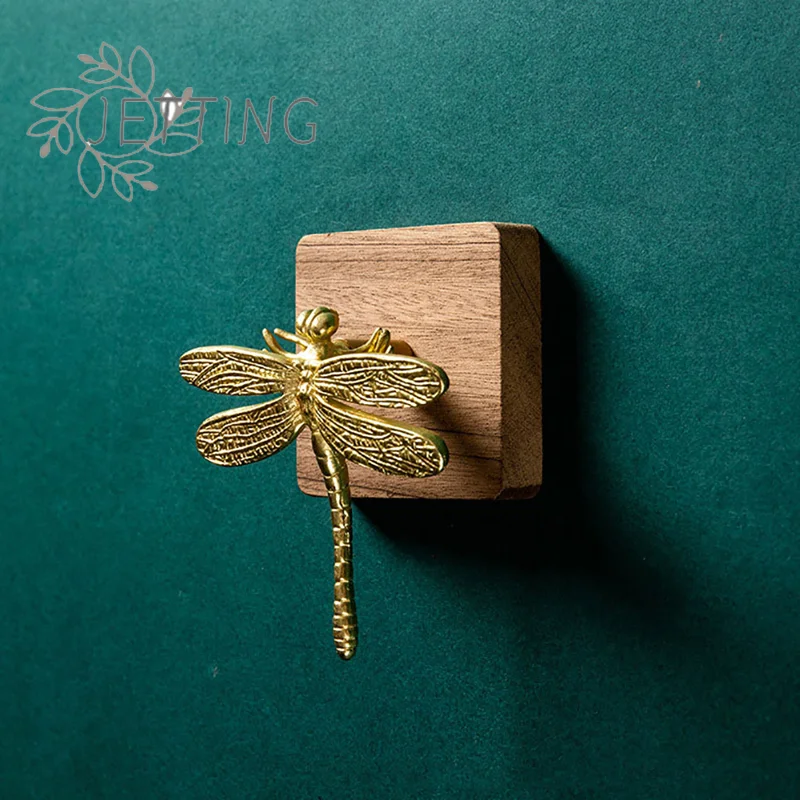 Hot Brass Dragonfly Handle Simple Nordic Cabinet Gold Pure Copper Drawer Door Knob Vintage Cabinet Brass Animal Pulls