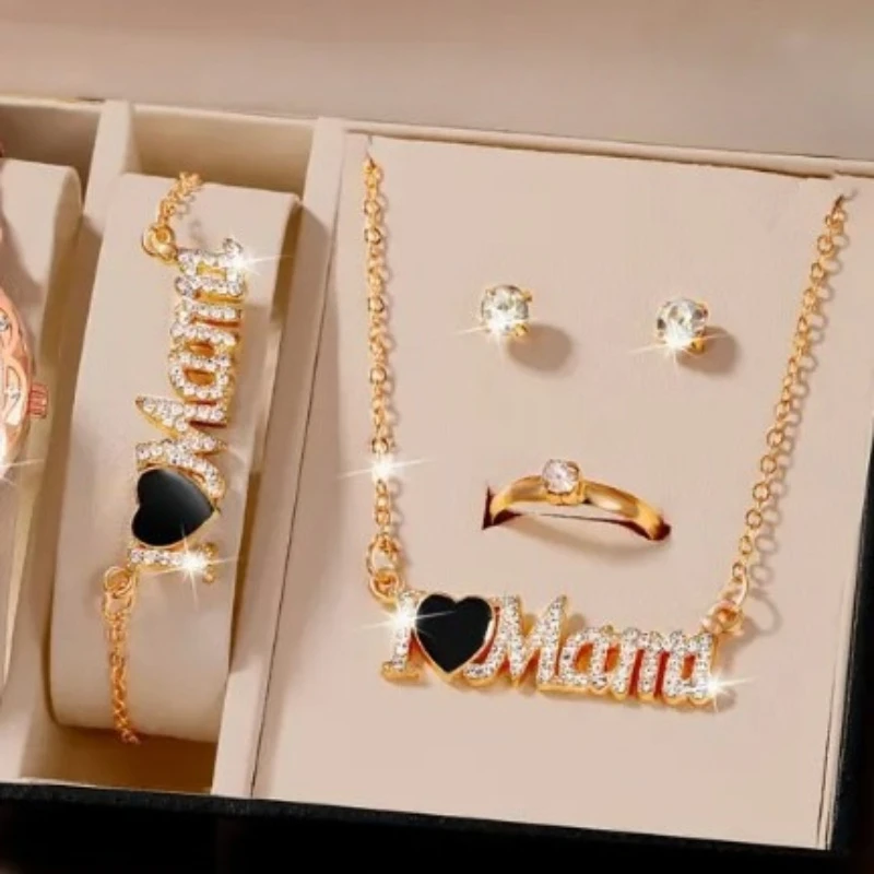 5 Pieces/set of Fashionable Sparkling Zircon Letter Pendant Necklace, Jewelry Set, Mother's Day Jewelry Gift for Mom