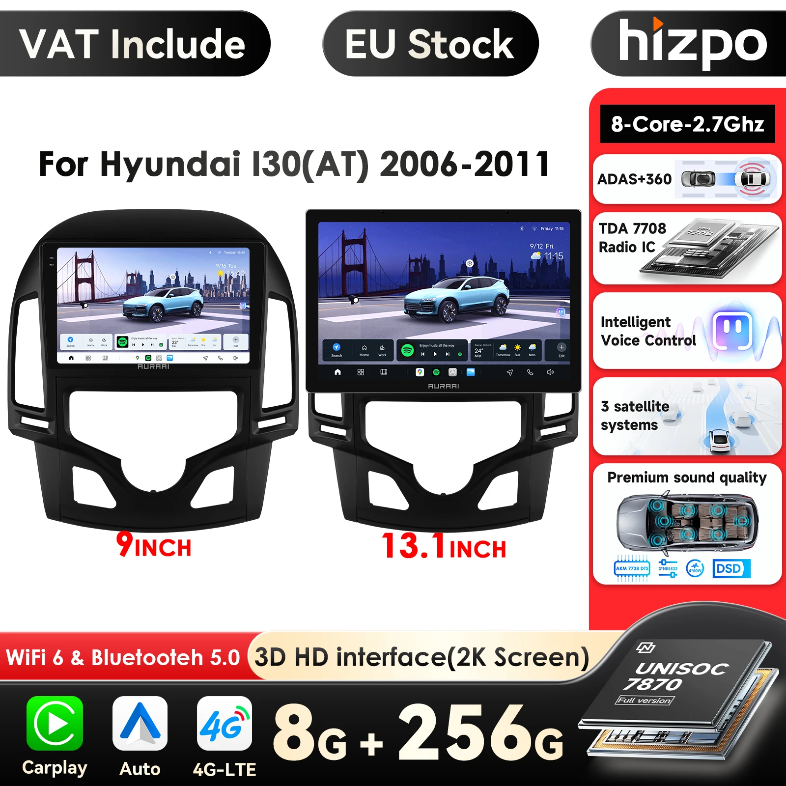 Hizpo 8+256 Android for Hyundai I30 2006 - 2011 Auto Manual Car Radio Multimedia Player DSP Stereo WiFi GPS Navigation Head Unit Autoradio Video Audio Monitor with FM AM RDS SWC DPD 360° Radar Camera Multimedia Player Mic AI Smart Intelligent Screen WIFI
