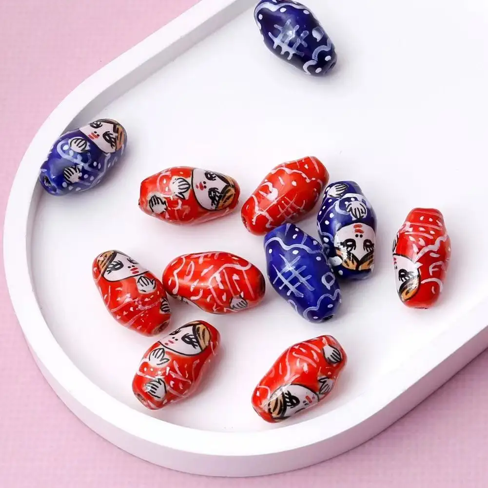 4pcs 22x13mm Russian Matryoshka Doll Shape Patterns Ceramic Porcelain Loose Crafts Beads lot for Jewelry Making DIY Findings