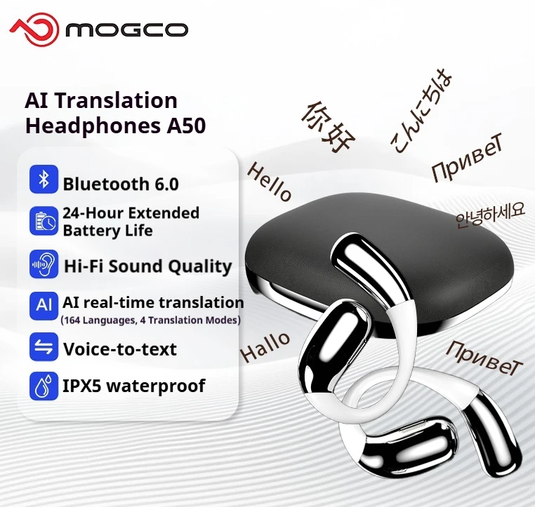 A50 Real-Time Translation Headphones 164 Languages AI Wireless Earbuds BT6.0 Smart Touch Control Clear Call
