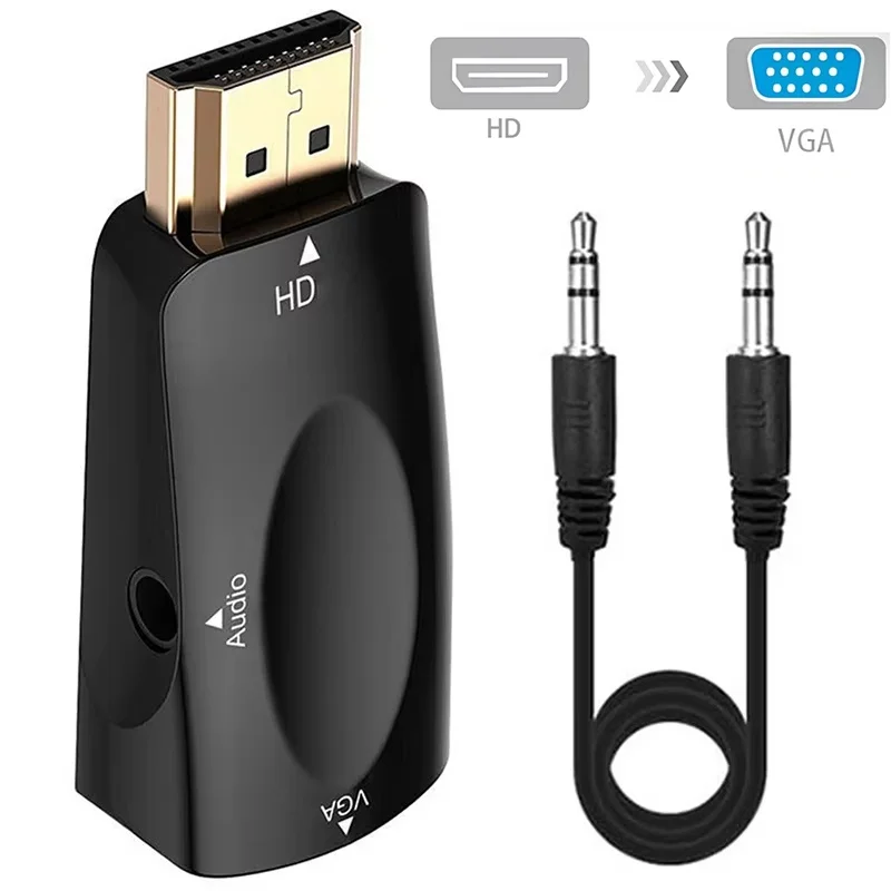 1080P HD HDMI-compatible to VGA Cable Converter Male to Female Transmission Adapte With 3.5mm Jack Audio For PC Laptop Projector