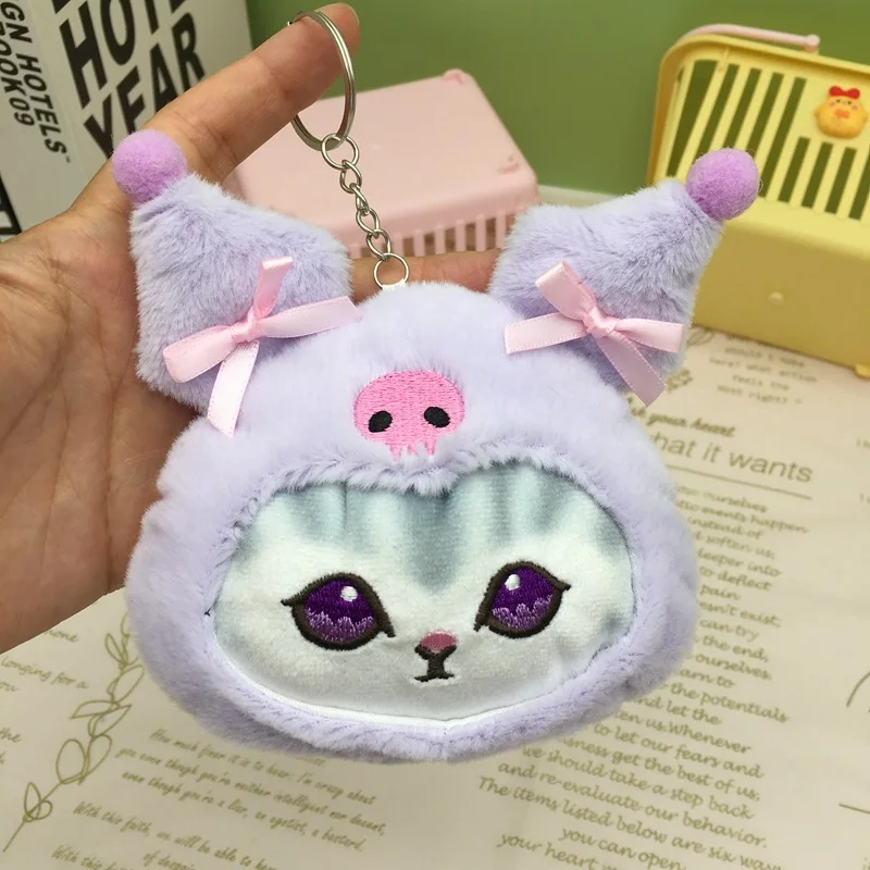 Vinyl Face Cat Plush Toy Cute Animal Rabbit Stripe Panda Stuffed Doll Blind Box Style Pendant Keychain Bag Decor Birthday Gift