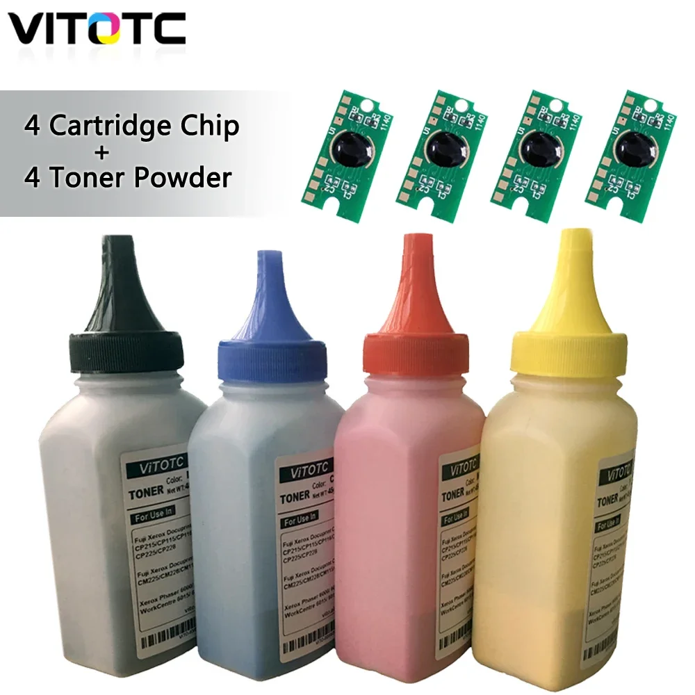 4 Color Bottled EA Toner Powder + 4 Cartridge Chip For Xerox Phaser 6020 6022 Workcentre 6025 6027 Laser Printer Powder Refill