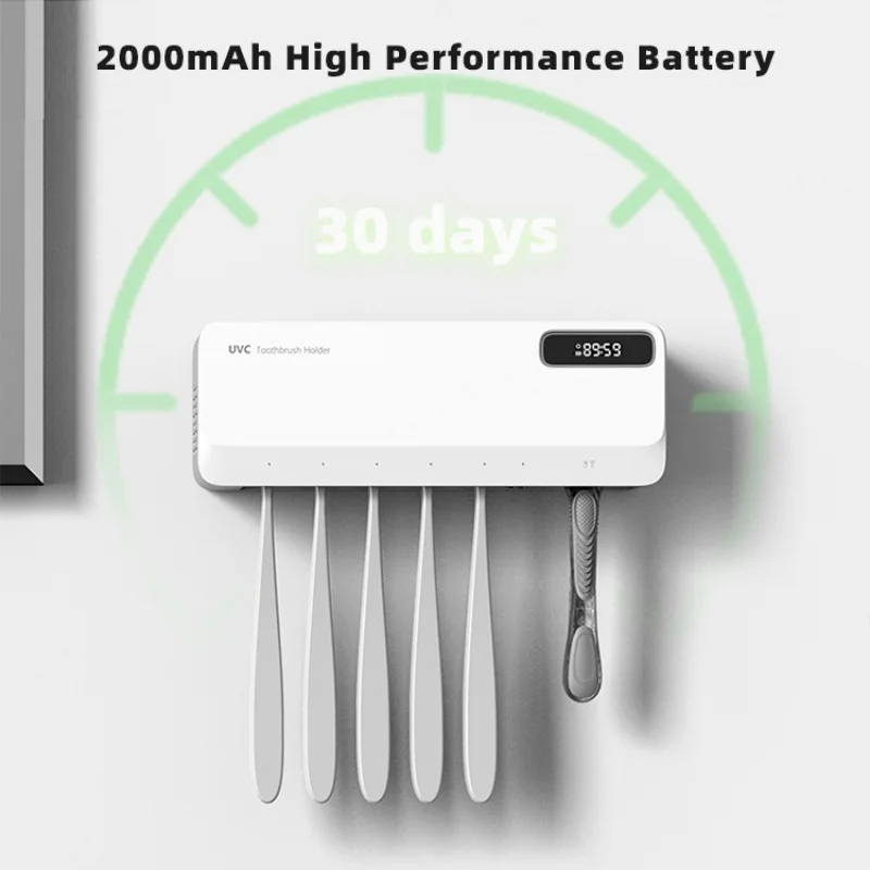 UV Toothbrush Sterilizer Rechargeable Fast Drying Wall-mounted Tooth Brush Holder With Led Display For Bathroom