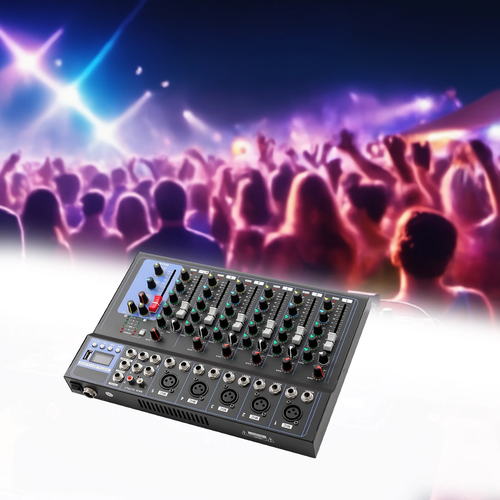 7 Channel Audio Mixer Amplifier Console Bluetooth USB DJ Live Studio Professional Mixing Board for Home Party Stage Performance
