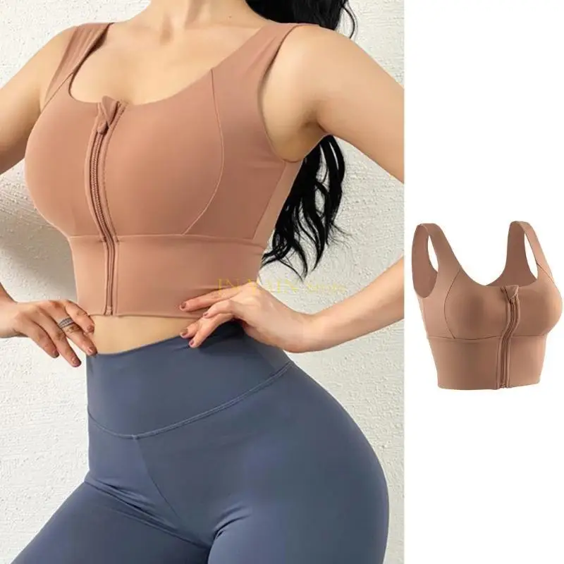 M5TC Zipper Sports Bra Gym Workout Underwear Push Up Yoga Crop Top Bras Athletic Bra