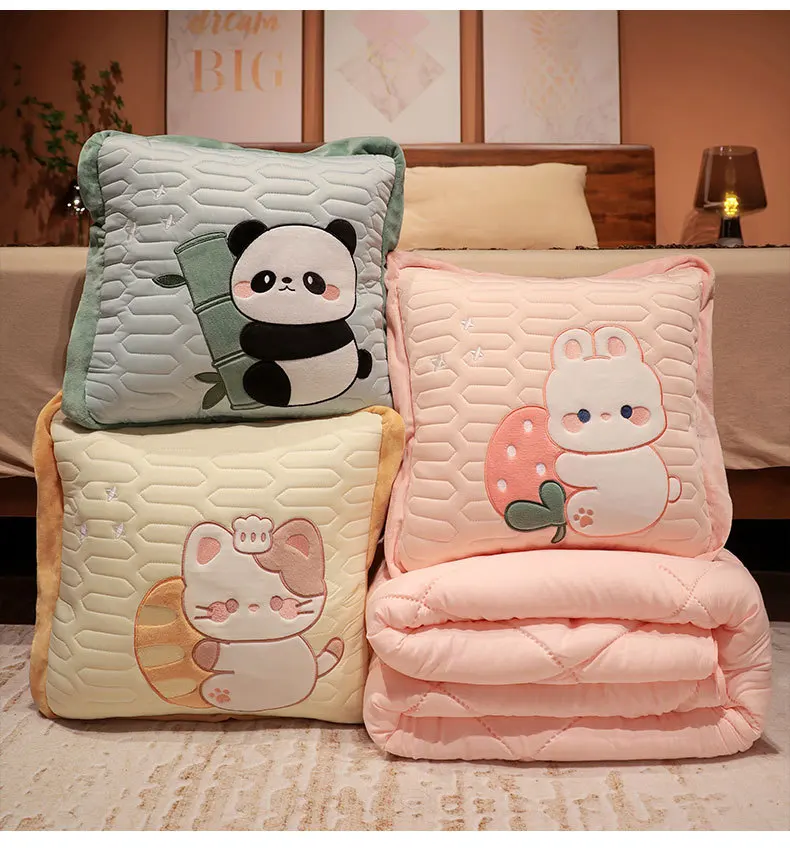 Cartoon Nap Quilt Blankets Foldable Sofa Napping Cover Warm Office Room Pillow Blankets Travel Portable Quilt Car Hug Pillows