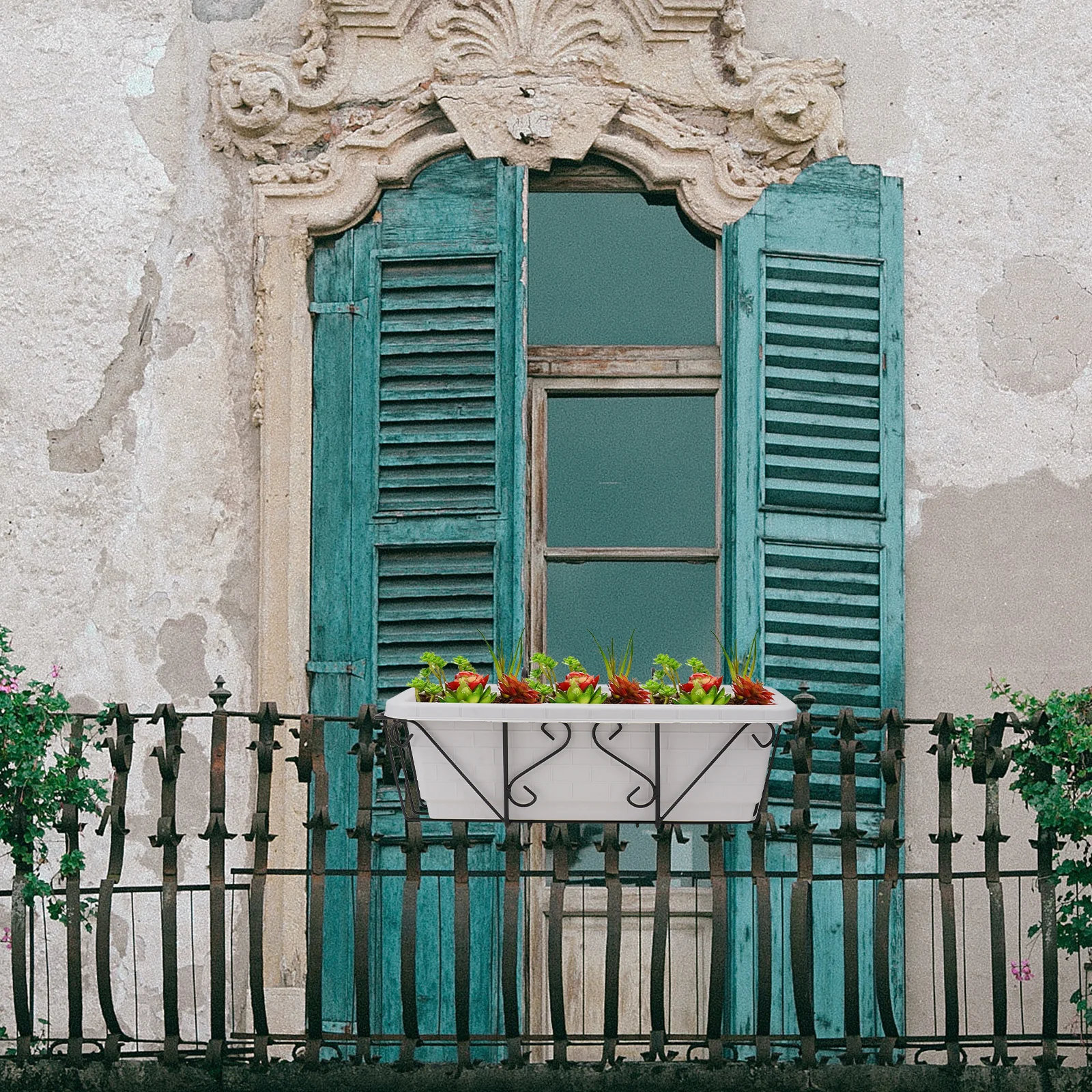 1Set Rectangular Suspension Flower Pot Durable Plastic Vegetable Growing Container Balcony Planting Pot with Iron Rack Tray