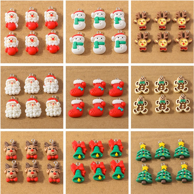 10Pcs Cartoon Christmas Charms Snowman Santa Claus Deer Pendants for Making Earrings Necklace DIY X'mas Gift Jewelry Accessories