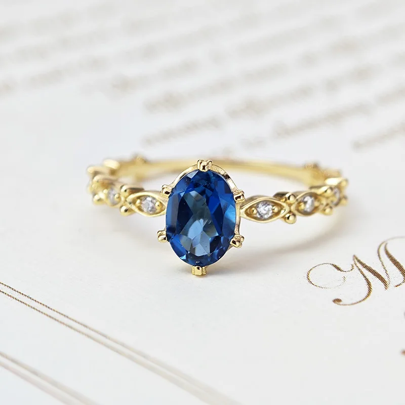 LAMOON Natural Topaz Rings For Women Gemstone Ring Blue Topaz 925 Sterling Silver K Gold Plated Wedding Engagement RI178