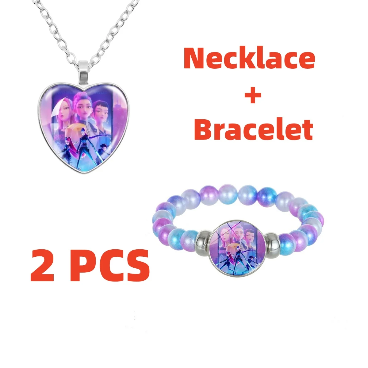2pcs Kpop Demon Hunters Jewelry Set Anime Necklace and Bracelet for Girls Kawaii Cosplay Accessories Christmas birthday Gift