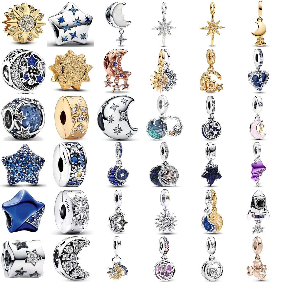 New Fashion 925 Sterling Silver Romantic Starry Sky Moon Sun Stars Pendant Fit Original Charms Bracelet Women Jewelry Gift