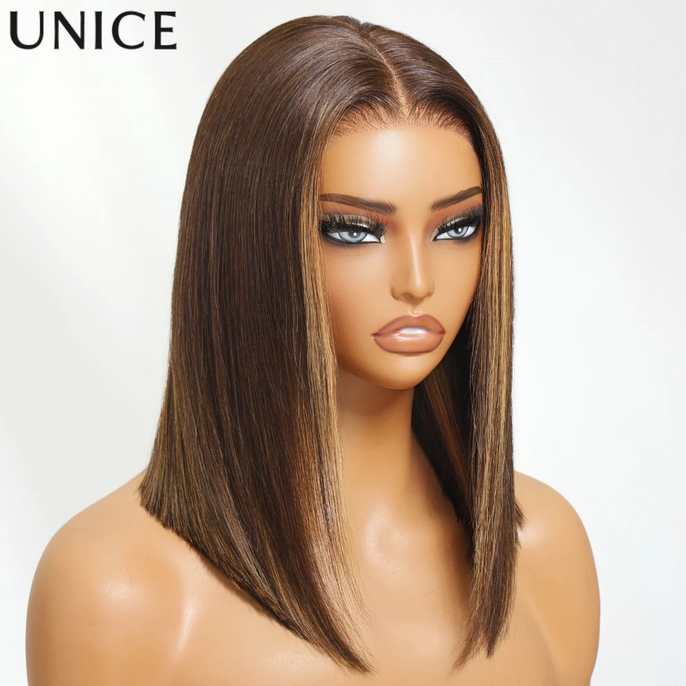 UNice Hair Pre Colored Bob Wig 7x5 Pre Cut Pre Bleached Glueless Wig Human Hair 150% Density