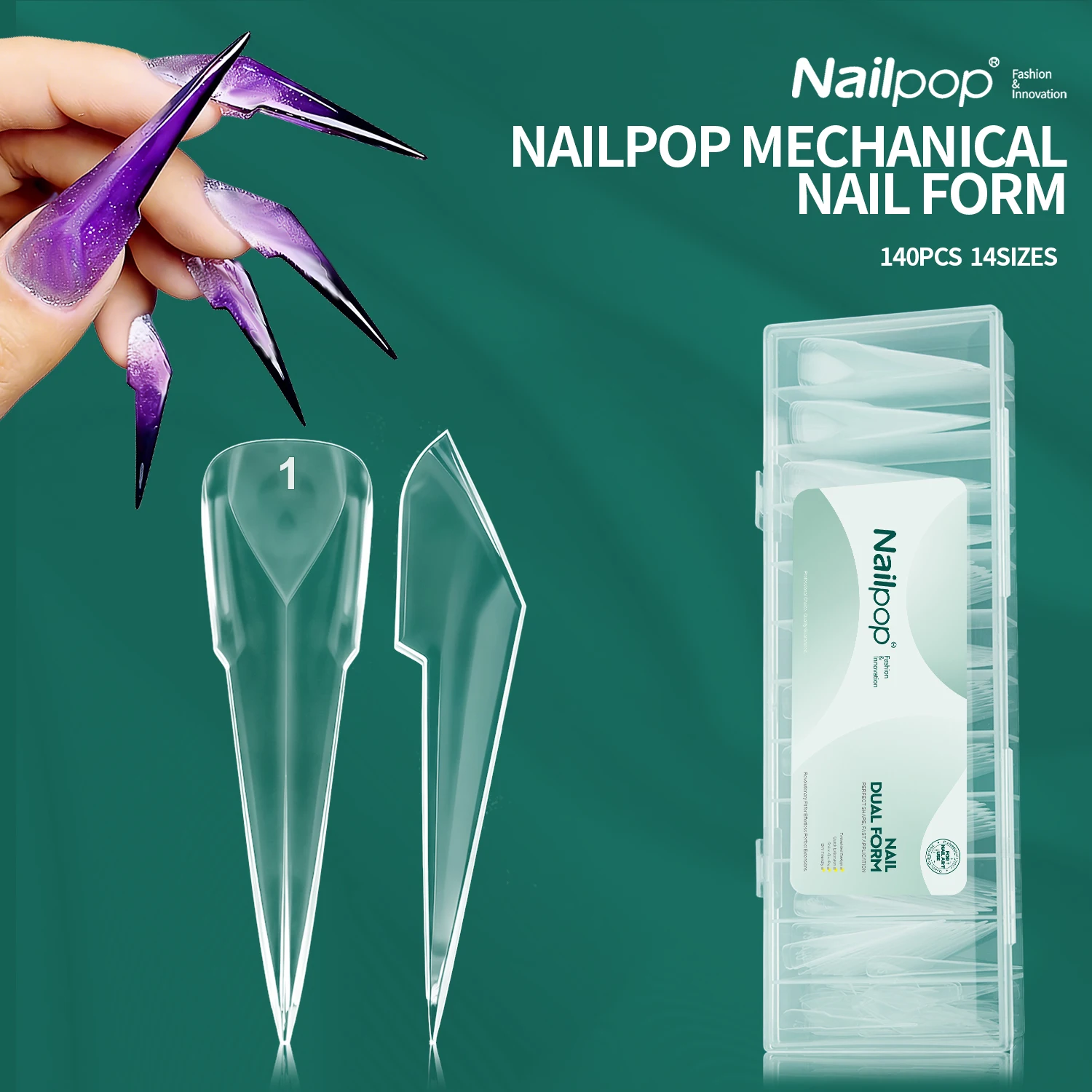 Nailpop Mechanical Nail Form 70/140Pcs Unique Dragon Claw Clear Nail Extension Forms 14 Sizes Easy DIY Salon Nail Art Tool