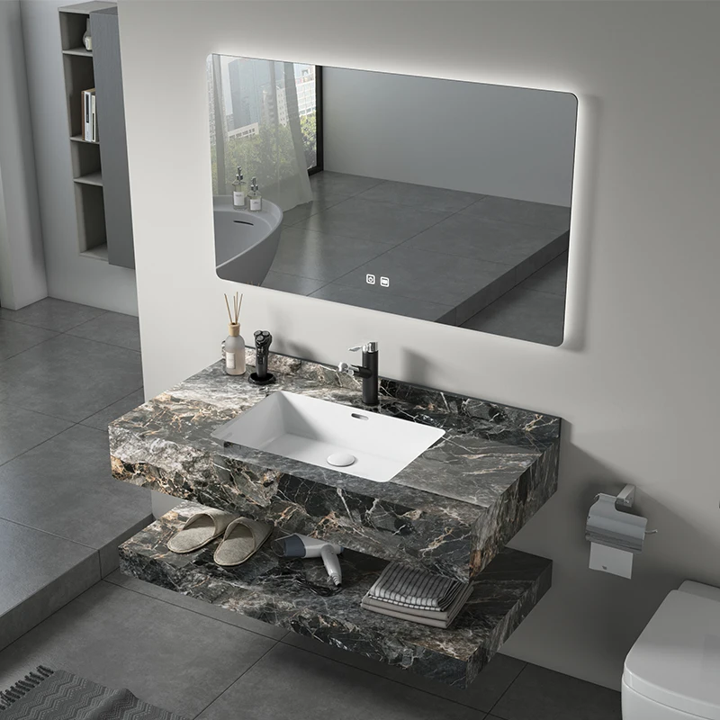 Modern Hotel Bathroom Marble Sinks Wall Sintered Stone Porcelain Floating Vanity Sink with Mirror Wash Basin