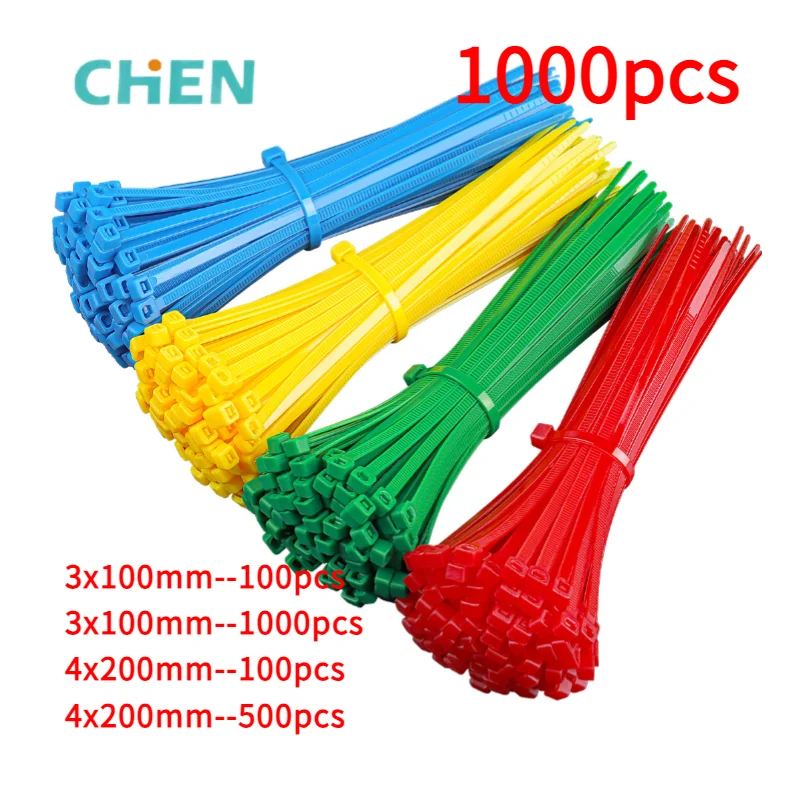 100 200mm Self-locking Plastic Nylon Green Yellow Red Blue Colored Cable Strap Wraps Nylon Zip Cable Tie Set Fasten Tyrap Flange