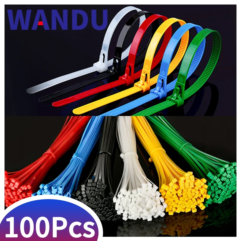 100PCS 3/4/5 Series Self-Lock Cable Ties Plastic Nylon Cable Ties Fasten Loop Cable Organizer Nine Colors Binding Belt
