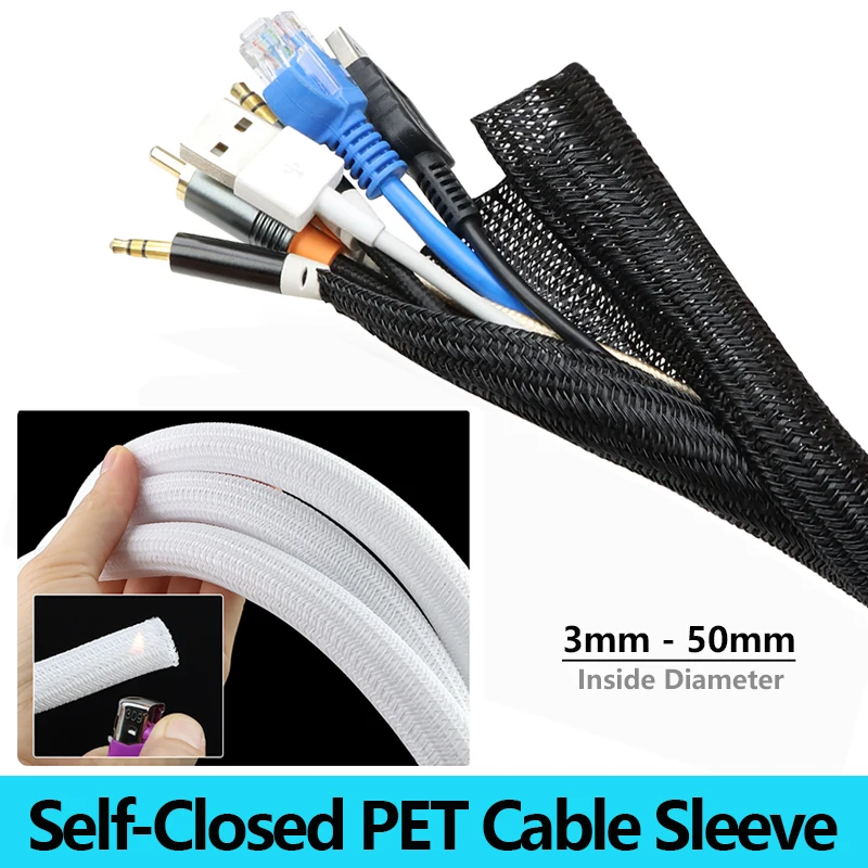 1~10m PET Self-Closed Cable Sleeve Dia. 3 5 8 10 13 16 19 25 32 38 50mm Split Loom Sleeve Insulated Wrapping Wire Protect Sheath