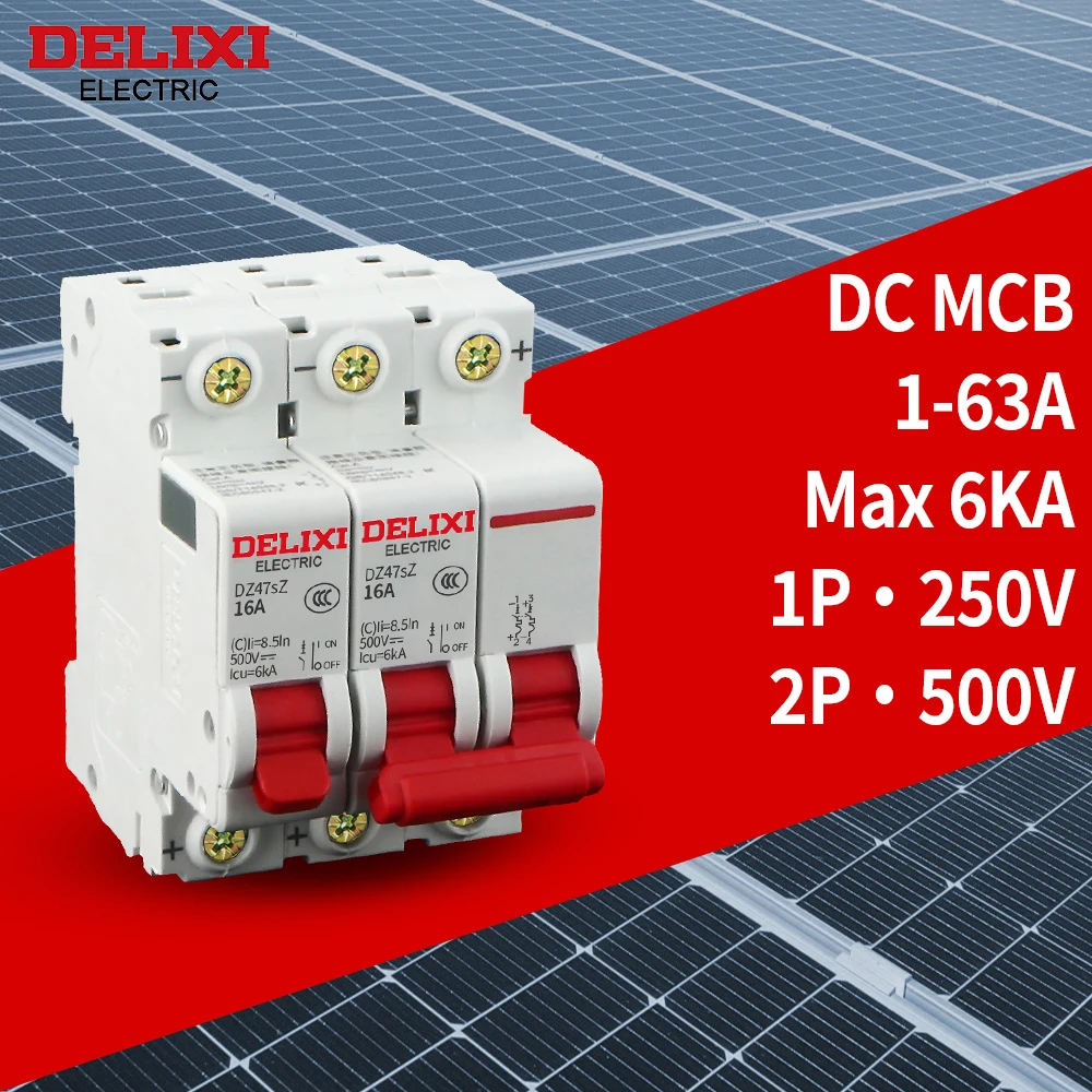DELIXI DC Mini Circuit Breaker 1A 3A 6A 10A 16A 20A 25A 32A 40A 50A 63A 250V 500V DZ47SZ DC MCB Photovoltaic PV System