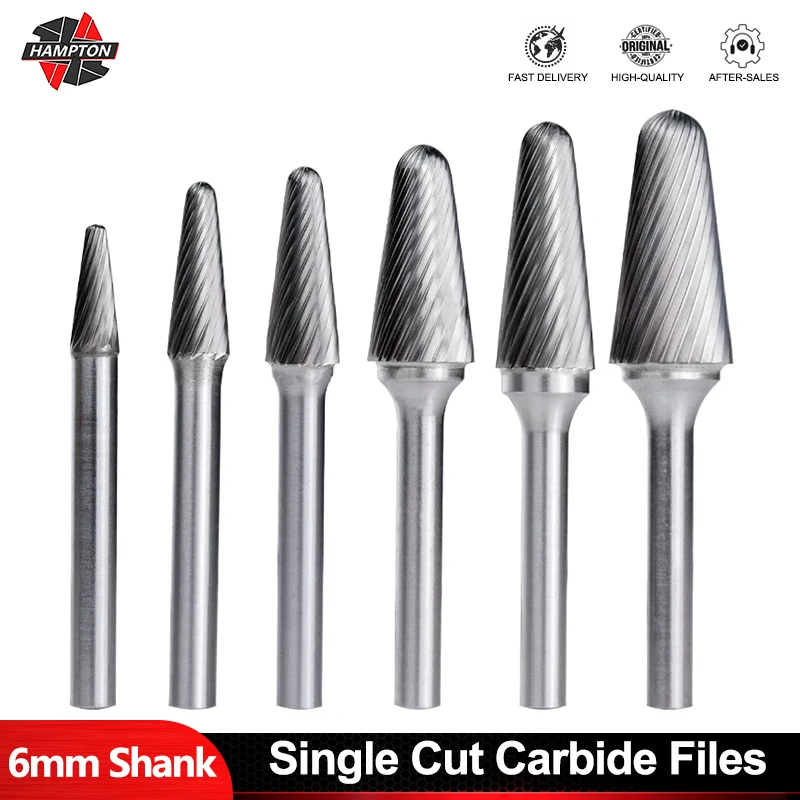 HAMPTON Carbide Burr 6mm Shank L Type Single Cut Rotary File For Rotary Metal Drill Milling Carving Tools