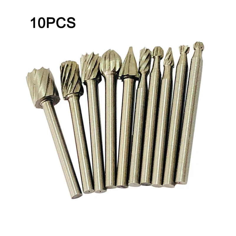 10pcs 1/8 HSS Routing Router Drill Bits Set Dremel Carbide Rotary Burrs Tools Wood Stone Metal Root Carving Milling Cutter