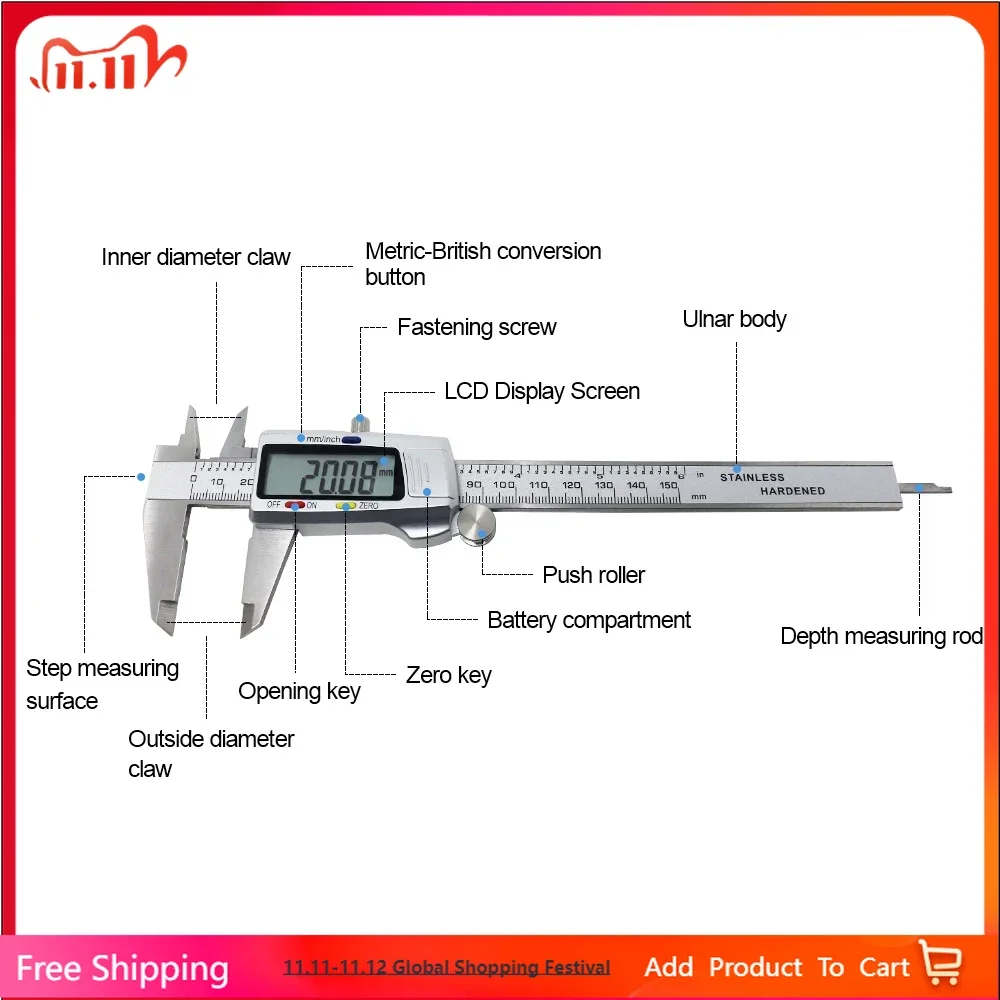 100mm 150mm Electronic Digital Caliper 6 Inch Carbon Fiber Vernier Caliper Gauge Micrometer Measuring Tool Digital Ruler