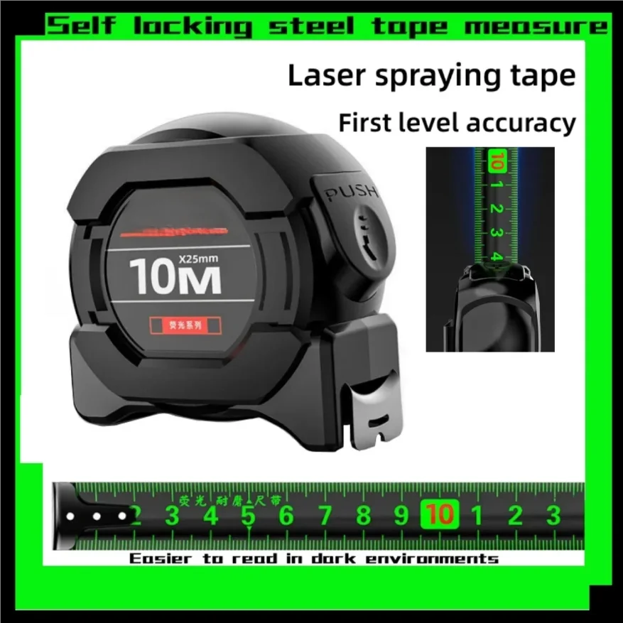 Self-locking Widened Thickened Fluorescent Steel Tape Measure High-precision Laser Ruler A Must-have Household Measuring Tool