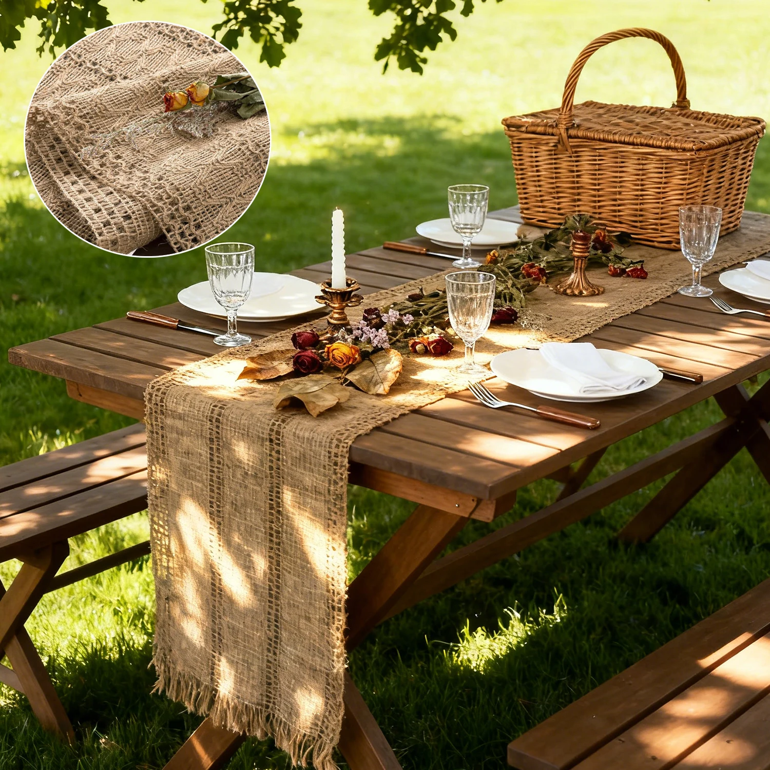 Simple Lace Table Decor Wedding Jute Tablecloth Desk Cover 30x275cm Party Ornament Romantic Wedding Table Decor