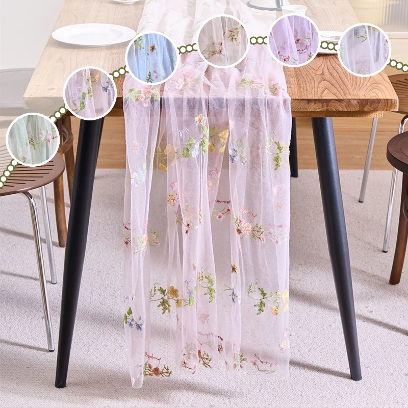 New Embroidered Floral Table Runner 300cm Long Lace Tulle Fabric for Wedding Wedding Birthday Party Dining Table Decoration