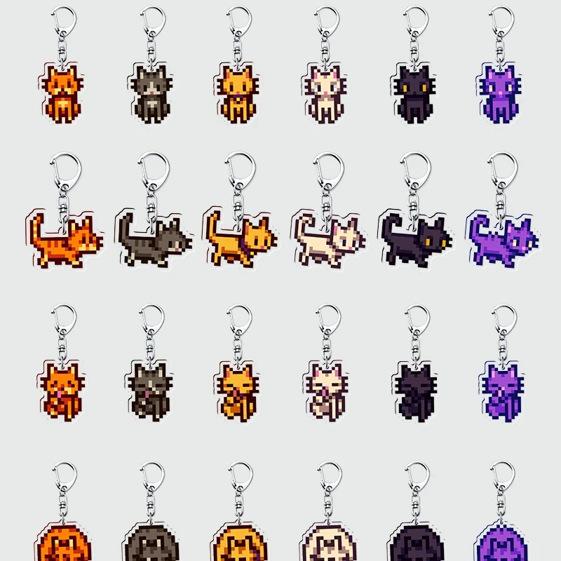 Hot Game Stardew Cute Sdv Keychains For Accessories Bag Cat Dog Chicken Pixel Farm Charm Keyrings Jewelry Friends Gaming Gifts