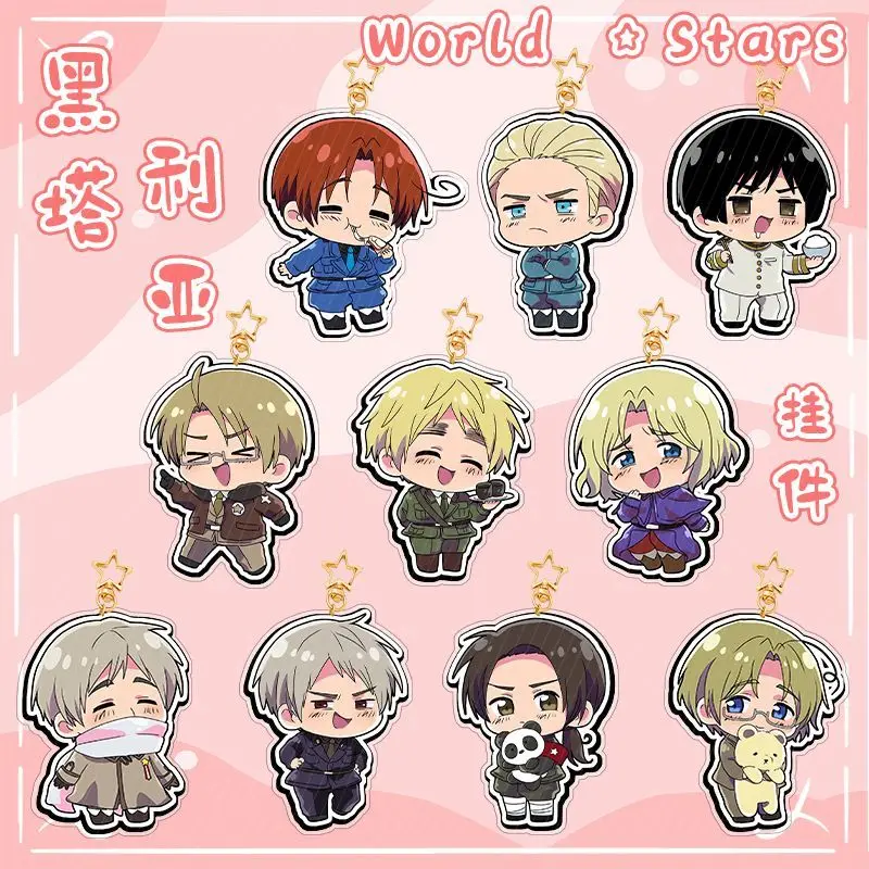 World Stars Anime KeyChain Feliciano Vargas Ludwig Men Key Chain for Women Fashion Creative Figure Acrylic Keyring Pendant Gift