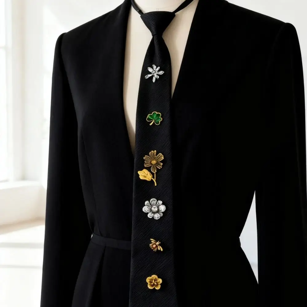 Korean Flower Tie Black Insect Rhinestone Necktie Harajuku Style Academic Style Decoration Shirt Tie Students