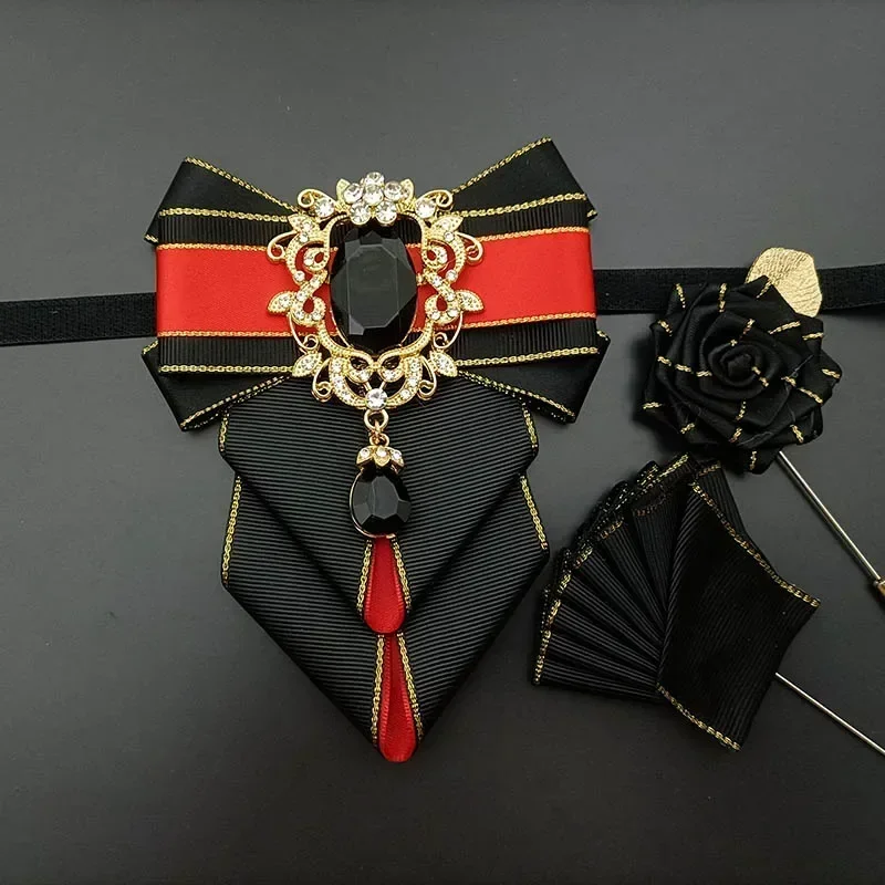 High-end Men's Bow Ties Sets British Korean Handmade Jewelry Gifts Business Suits Shirts Wedding Rhinestone Bow-tie Corsage Set