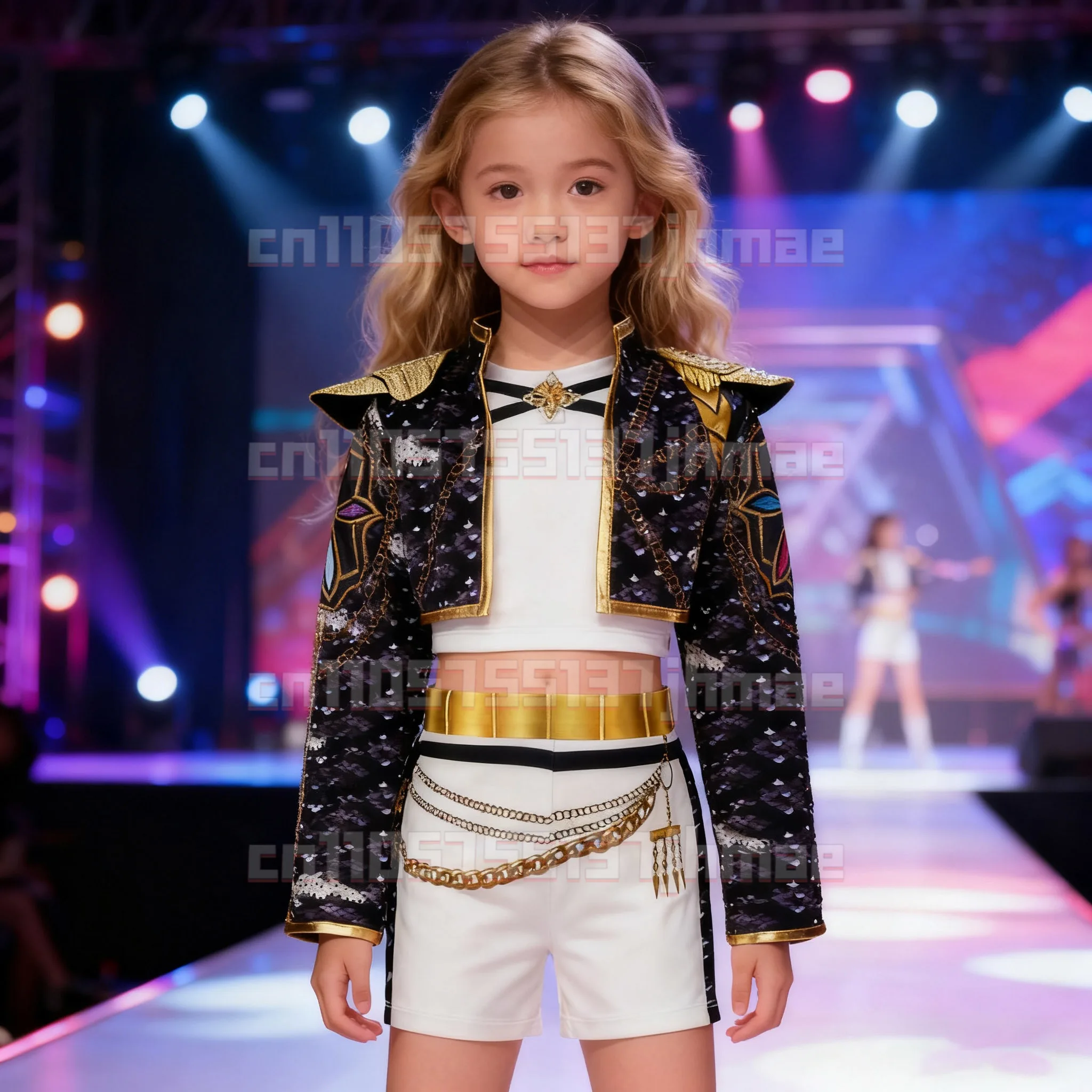 Children's Kpop Demon Hunter Rumi Cosplay Costume Anime Girls' Golden Black Role Play Outfit Stage Performance & Halloween Sets