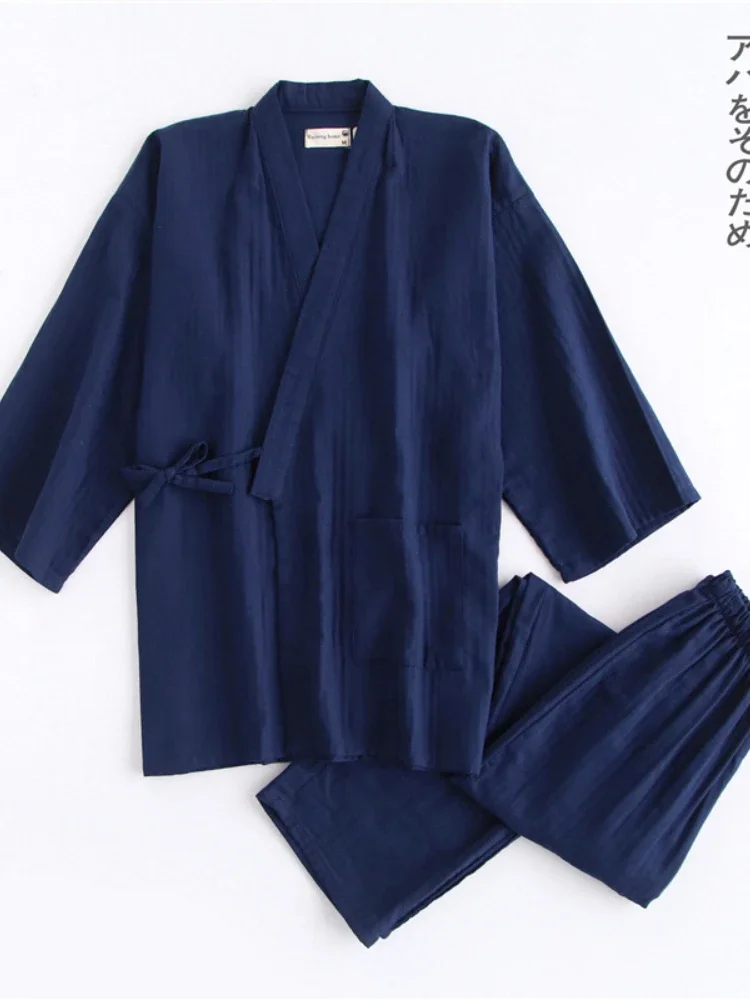 Traditional Japanese Pajamas Set Kimono Haori Yukata Nightgown Japan Style Housewear Men Gown Sleepwear Obi Outfits Asian Cloth