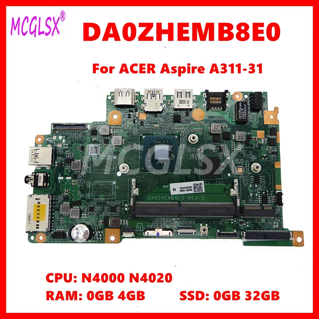DA0ZHEMB8E0 Laptop Motherboard For ACER Aspire A311-31 Notebook Mainboard with N4000 N4020 CPU 0GB/4GB RAM 0GB/32GB SSD Test OK