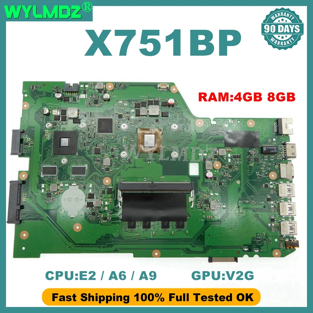X751BP Mainboard For Asus X751B F751B R752B K751B A751B Laptop Motherboard with E2 A6 A9 CPU 4GB/8GB-RAM V2G-GPU 100% Tested OK