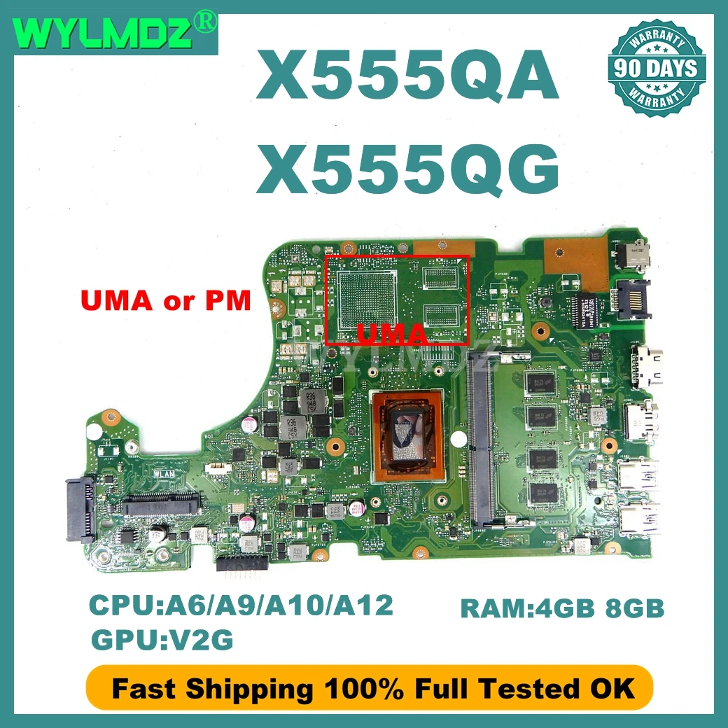 X555QG Mainboard For ASUS X555QA X555QG X555DA X555BA X555BP K555B A555B Laptop Motherboard A6/A9/A10/A12 CPU 4G/8G-RAM UMA/PM